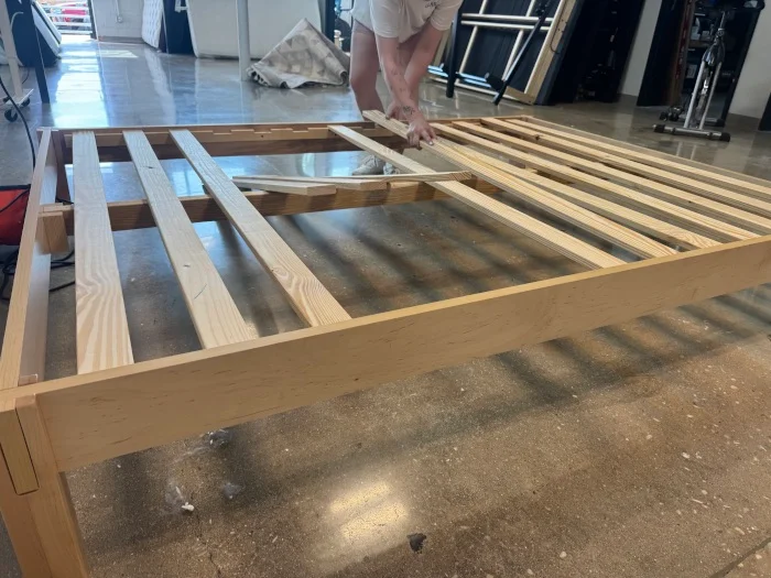 The main issue with this frame reared its head in the assembly. The frame didnโt come with instructions, so the team had to reference a picture of the assembled frame to figure out where to start. โThat said, the assemblers said it was intuitive once they started going,โ Cait explained. They used a power drill to speed along the process, which took about 35 minutes. Although this isnโt horrible, the average Joe might struggle, especially if their order comes sans instructions as well.