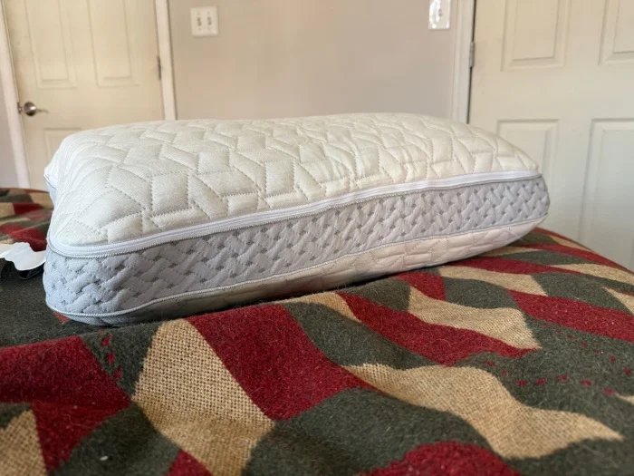 Kenny didnโt think that the pillow felt cheap either, and thought the zippers were relatively sturdyโpart of why he gave it a 4/5 for materials. The pillow is made with hypoallergenic shredded memory foam and polyfiber fill, alongside some cooling gel and a breathable cotton cover. During testing, Kenny didnโt think the pillow was cool-to-the-touch, but still noted that he didnโt feel liable to overheat on it.