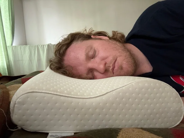 Trying it out on his side, Matt did achieve proper alignment. Back sleepers should be alright too, though he thought they had a smaller surface area to work with, based on how the pillow conforms to their neck. He also found that stomach sleeping on the lower side was actually rather comfortable. This is good news for combination sleepers who switch between these positions, as most cervical neck pillows are only good for one sleep posture.