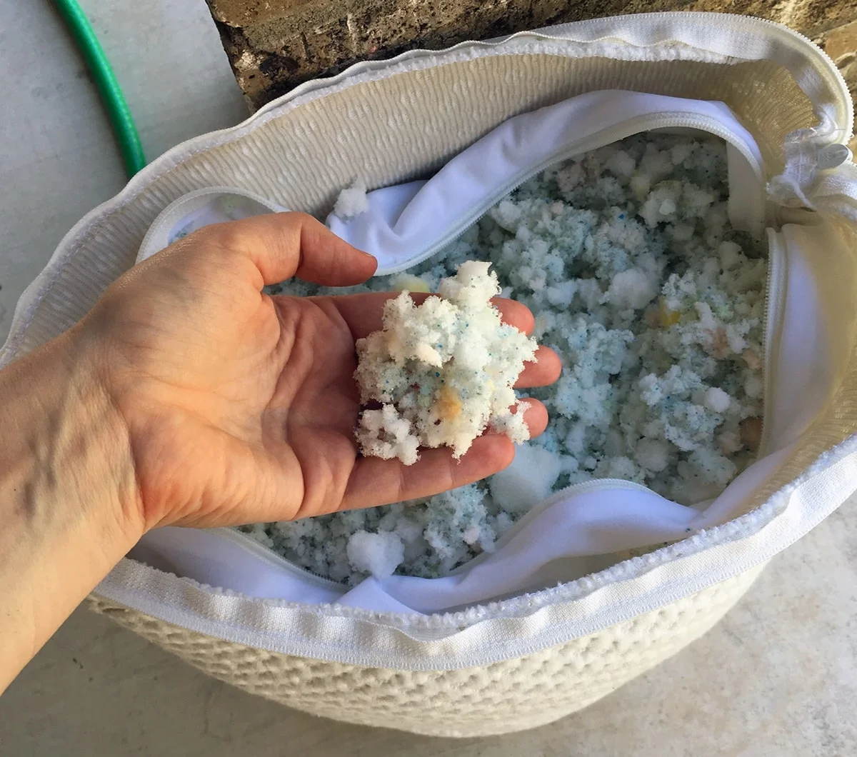 Taking out some fill from a pillow to create a flatter, softer feel.