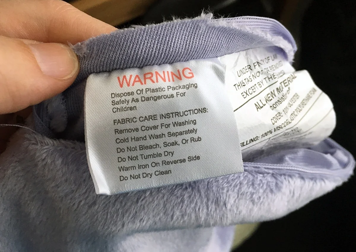 - Care instructions recommend line drying the pillow in the shade