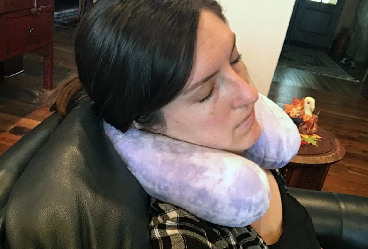 As I mentioned, the Comfort Master pillow is a solid molded piece of foam shaped into a โUโ. Because the foam is wide in the back, the pillow pushed my head forward when I was in a high-backed seat. For those taller than me โ Iโm 5โ7โ for reference โ or if a personโs head reaches above high-backed chairs, I can see this foam adding extra support. Otherwise, it has the potential to be uncomfortable. In general, I thought the firmness of the pillow was at a nice level โ it wasnโt too soft or too firm for me. That being said, there just wasnโt enough filling to support my neck when I rested my head to the side in my car. My head still hit the window and my neck began to feel stiff from lack of support in the pillow. It was only when I sat upright that I felt truly supported.