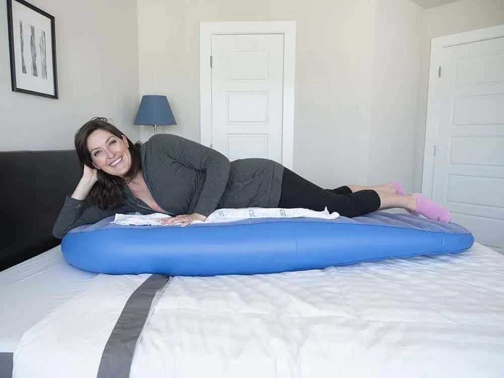 Size is a big factor with this pillow because the entire piece must be inflated to achieve full-body support โ but it takes up a lot of room. I used the pillow on the floor, but Iโve seen people put it on top of their mattresses as well. This would take up quite a lot of room in a Queen sized bed. At 5โ7โณ, my feet were just touching the bottom and my arms were resting at the top. I think this is the right size for me but anyone taller might find their feet or hands dangling off. The Cozy Bump is an enjoyable and supportive pillow when a pregnant woman needs a break and wants to lay on her stomach without putting pressure on her stomach. Those planning on sleeping on it overnight, I would just run it past a doctor to make sure they feel like thatโs a long-term option. Otherwise, I think itโs a nice short-term pillow to rest on. The price for the pillow is fairly high if itโs only going to be used for breaks to rest but it will be up to a woman to decide if the relief she gets from lying on her stomach during her pregnancy is worth it.Cozy Bump Pregnancy Pillow