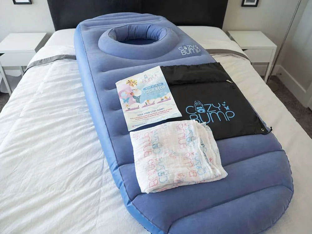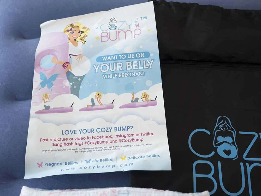 Pregnancy can take its toll on a womanโs back โ and her sleep. Towards the latter part of pregnancy, many women must sleep primarily on their sides and avoid back and stomach sleeping. This can be quite a change (and not always in a good way) if she is used to mostly sleeping on her back or stomach. The Cozy Bump promises to safely cradle the baby bump so women can rest on their stomachs comfortably. At 28 weeks pregnant, this sounded pretty appealing to me and Iโm glad I had a chance to review this unique pregnancy pillow. Before purchasing the pillow, make sure to have an electric pump that will work for most air mattresses. This type of pump should work for the Cozy Bump as well. People can also purchase a pump off of the Cozy Bump website for an additional cost. Either way, itโs going to need something electric to inflate this pillow โ blowing it up with manually would be serious work and our lungs are already compressed to begin with. I made sure to read all the instructions the pillow came with and watched the videos they provide online. Iโd highly recommend this to get a clear and concise understanding of how the product is designed to aid a pregnant woman and what it should look like in terms of supporting the body. Make sure to fully inflate both chambers first before using the pillow!