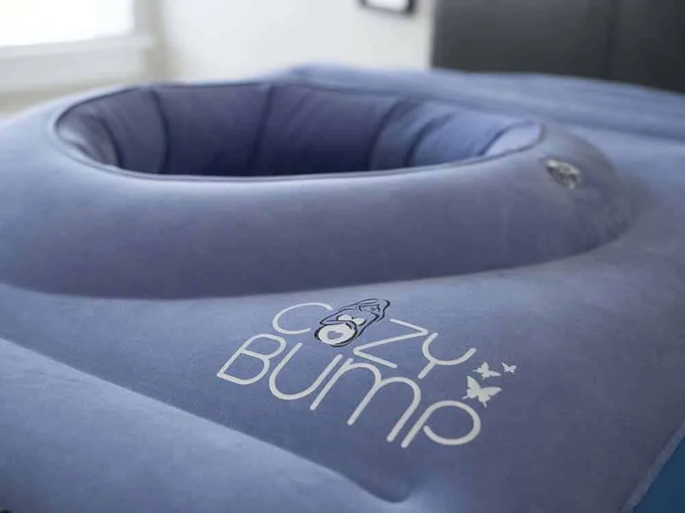 The Cozy Bump inflatable pregnancy pillow offers pregnant people a chance to lay on their stomachs comfortably.