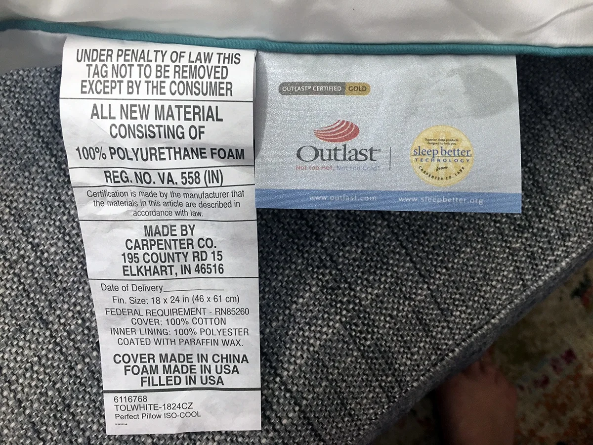 Iso-Cool is a registered trademark of Carpenter Co. According to their website, Carpenter Co. is the world’s largest maker of polyurethane foam and the leading processor of polyester fiber for the bedding industry. The pillow comes in a range of sizes and shapes, including traditional (standard), gusseted, and contoured.Pillow Construction