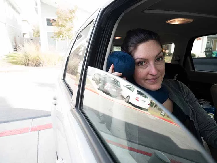 Unlike other more traditional U-shaped neck pillows, the unique design of the J-pillow had me instantly intrigued when I unpacked it. True to its name, the pillow is shaped like a puffy letter “J” and, after reviewing the illustrated brochure, I learned precisely how it should be worn for ultimate support. I placed the longest section of the pillow – the part that acts like the curve of the “J” – under my chin and the shorter sections fell into place by my eye and around a good portion of my neck. As a side sleeper, the feeling of soft velour-like fabric on the side of my face was instinctively familiar and soothing. As noted, the J-pillow fabric is very soft and plush, and about average firmness with its polyester filling. To get the best take on the pillow, I used it in the passenger seat of my car, in a high-backed seat in the nursery and lying down on my side on my couch. RELATED: Best Travel Pillows I also took my glasses on and off during the review and found that the pillow touches the side of the face right by the temples, causing it to interfere with the arms of my glasses and I could not lay on my side and use it comfortably and wear them at the same time.