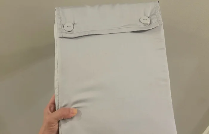 “The sheets fit our queen bed perfectly, but what stood out about their fit is how the pillowcases were designed,” Cait said. “Each pillowcase wrapped entirely around the pillow with the opening in the middle and the pillow tightly stuffed inside, so there are no wrinkles and risk of the pillowcase sliding off at the ends.”