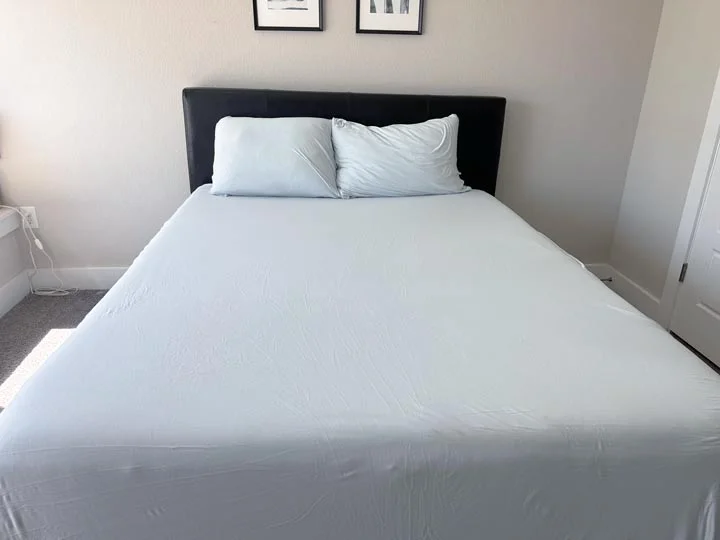 Climbing into bed for a quick nap, the rayon sheets performed about how I expected them to. They have a really soft and lightweight feel, so they were great for me as I tested them out in the middle of the summer. I didnโt feel hot and sweaty under these sheets, even when I added an extra thin layer like a knit blanket on top.