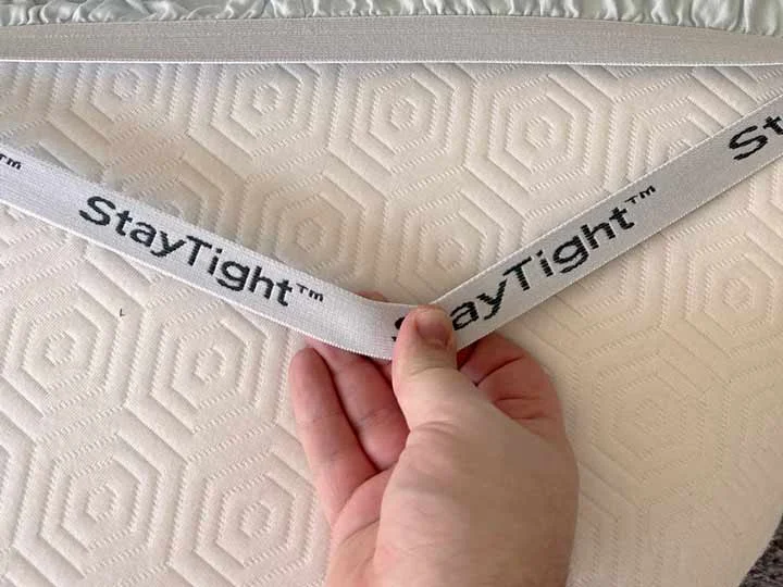 When I was dressing the bed, I noticed that the sheets also had a bit of stretch, which was another surprise for me, as bamboo sheets donโt normally have a stretch to them. The additional, diagonal strap in the fitted sheet also really helped keep it tight and secure on the mattress.
