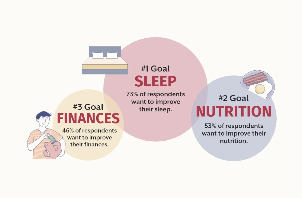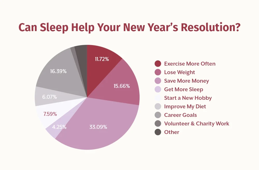 In a separate survey that we conducted on MattressClarity.com, we asked respondents to identify their top resolutions for the New Year. A not-so-surprising 73% of respondents want to improve their sleep, followed by 53% wanting to improve their nutrition and 46% wanting to improve their finances.