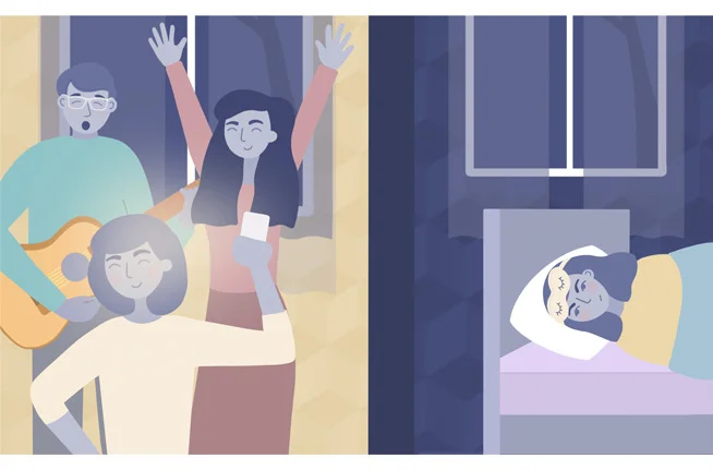 Maybe one roommate has a loud alarm clock that wakes you up every morning; perhaps they could switch to a vibrating alarm on their phone or smartwatch. If your roommate goes to bed much later than you, maybe they can agree to use a flashlight once you’ve gone to sleep and to be as quiet as possible when they get ready for bed. If social visits are causing the issues, draft a roommate agreement that mandates no guests after a certain time of night.