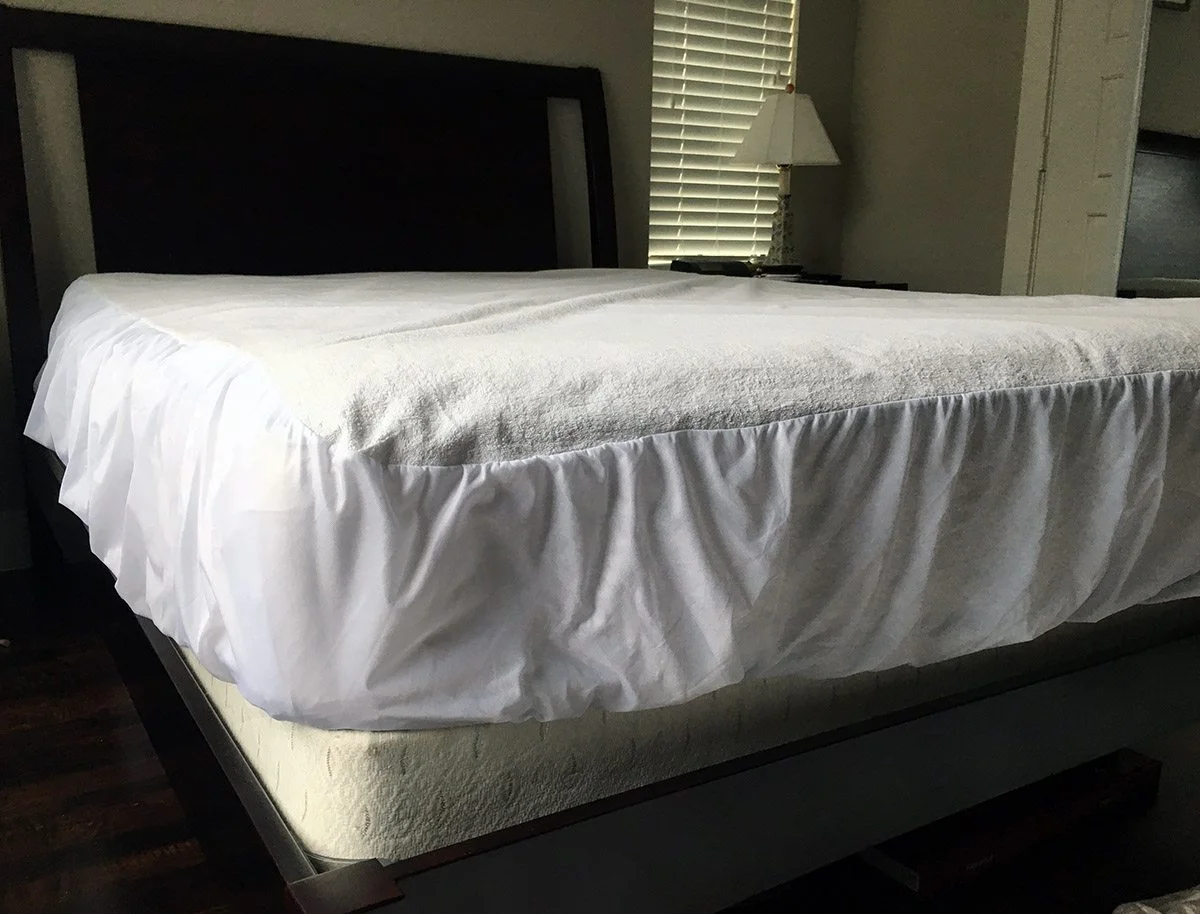 In truth, these two mattress protectors are incredibly similar โ theyโre even priced the same (around $69.95 for a Queen size). During my reviews, I was able to feel the cotton terry underneath my sheets with the Luna protector and I couldnโt feel it with the SafeRest protector. Since both mattress protectors fit mattresses up to 18-inches they were both a little too big for my 10-inch mattress. Extra material typically generates more noise, shifting and increases the chances that youโll feel the protector under the sheets. The reason I felt the Luna protector under my sheets โ and not the SafeRest protector โ was the stronger elastic on the SafeRest protector that held the material closer to the mattress. Even from photos, I can see much more material hanging off the sides of my mattress when I reviewed the Luna protector as compared to the SafeRest protector.
