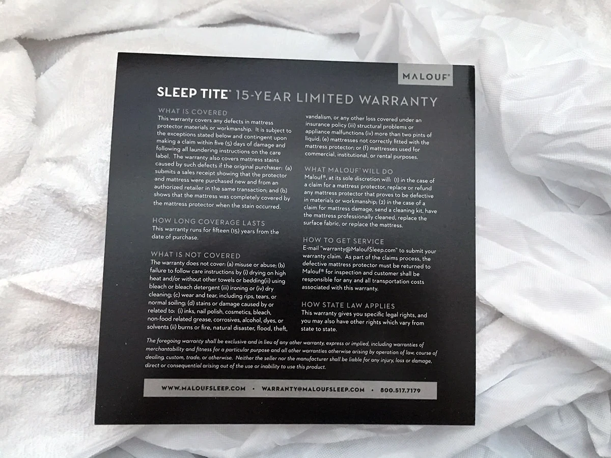 The standard Queen size protector can be found on Amazon for $39.99 and California King size ranges from $47 to nearly $65 (depending on the seller). These prices seem close, if not slightly more expensive, than many terry cloth waterproof protectors Iโve seen. If you are more concerned about allergies, bed bugs and dust mites, you may consider an encasement mattress protector like the Sleep Defense System protector. If people have a thicker mattress and are looking for a protector that will provide a waterproof barrier over the surface of the mattress and help with allergies and breathability, the Sleep Tite Pr1me Mattress Protector from Malouf could be the right fit for them. The protector does come with a 15-year limited warranty.