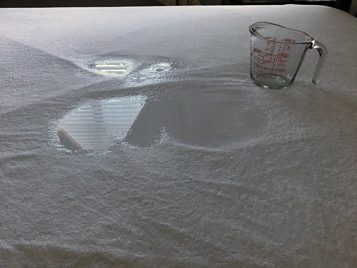 Unlike the Sleep Defense System mattress protector, which encourages people to address small accidents right away, the Sleep Tite Pr1me protector seems to anticipate larger accidents that may stay on the mattress for longer than anticipated. To test the polyurethane waterproof barrier, I poured 12ozs of water into the middle of the protector to mimic a larger spill or accident. Since many accidents can happen in the middle of the night and may not be addressed immediately, I left the water on the protector for a couple of hours.