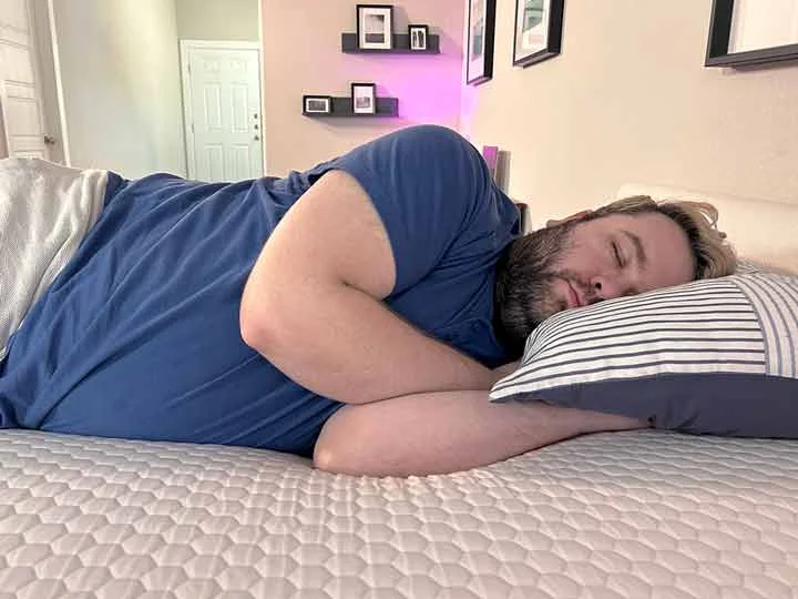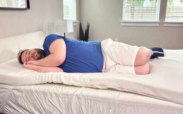 My hips sank into the topper just enough, and I didn’t feel like I was going to bottom out of the topper. But I’m a side sleeper by nature, so I shifted over to my side. Thanks to the 3” of foam, I felt really good pressure relief along my hips and my shoulders.