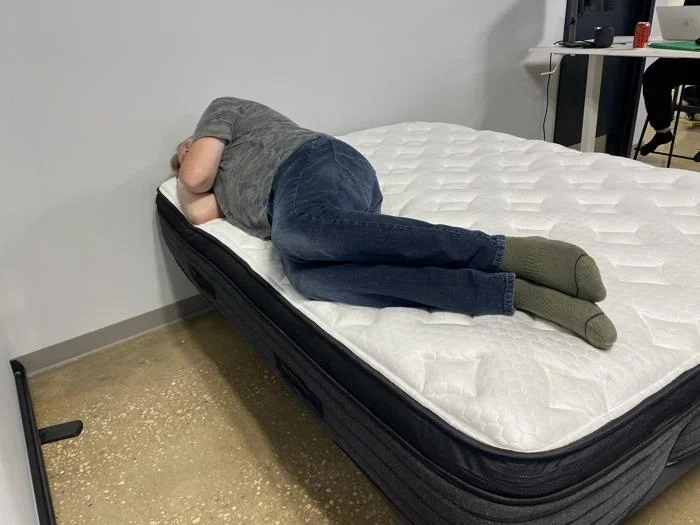 When testing for support and edge support, our testers lie down on the mattress in each sleep position in the center and on the perimeter of the bed. While doing so, they gauge how secure we feel and whether our spines are aligned.