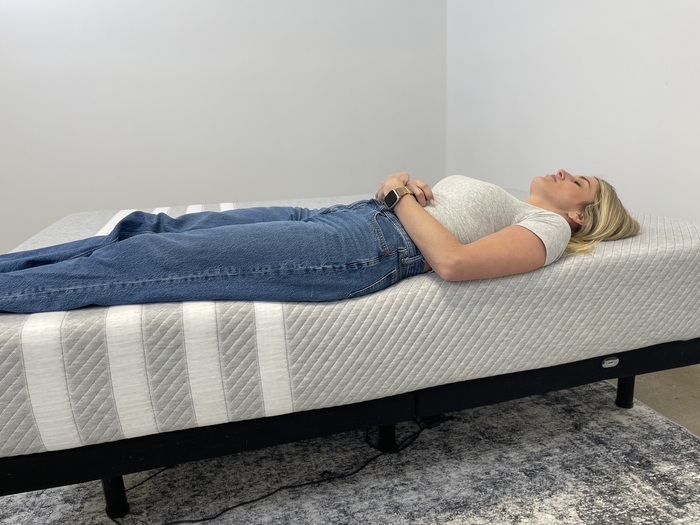 “While I’m feeling a lot of support on this mattress, there’s not a ton of cushioning,” Dr. Habeeb said. “There’s not enough body contouring to relieve joint pain in this position.”