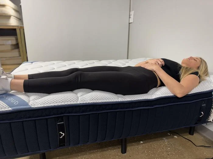 โI feel really great support on my side,โ she said. โThe pressure relief is doing a good job and not creating any uncomfortable positions for my spine.โ On her back, she felt โfully aligned and supported,โ though she noted the on-top feel may not appeal to all sleeper types. โOverall, I feel great,โ she finished, rating pressure relief at a 4.3/5.