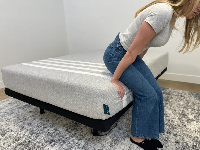 Unfortunately, the cushiness didnโt help when it came time to perform the edge support test. โThe bed sank a bit when I perched on its edge, more so than many other beds Iโve tested,โ Cait said. โI donโt think seniors would have any issue getting in and out of this bed based on its edge support, but people, especially those who weigh more than 230 pounds, who like to sit on the side of the bed might be disappointed by how easily its structure crumbles.โ