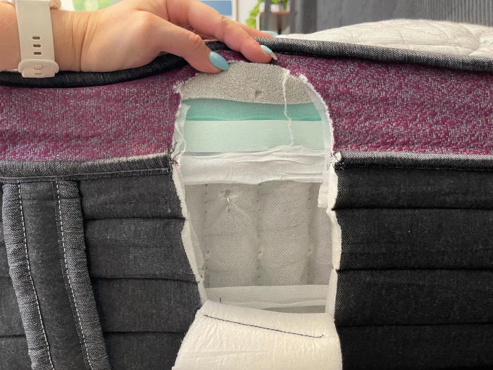 The Plank Firm Luxe combines individually wrapped innerspring coils with layers of open-celled high-density memory foam on each side. The coil support system provides a stable base that helps keep the spine lifted and aligned. Meanwhile, its thin foam layers add just enough contouring to cushion pressure points without compromising firmness. This construction helped earn the mattress a 4.5/5 in the responsiveness category on the firm side and a 5/5 on the extra-firm side.