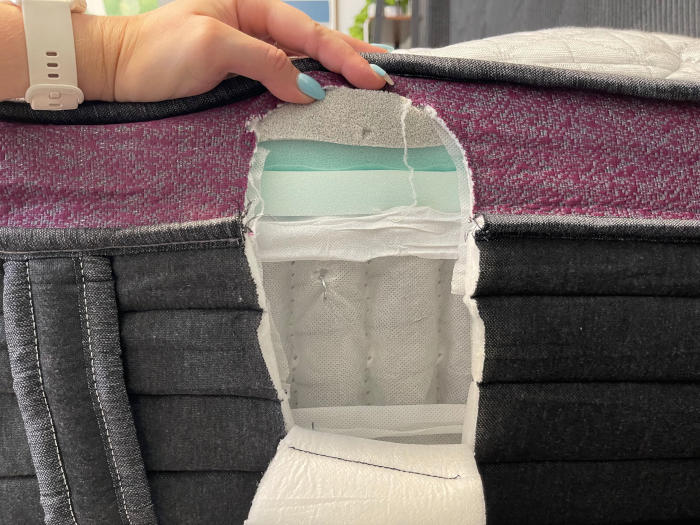 The DreamCloud is a hybrid mattress. This means it has both cushioning foam and supportive coil layers.