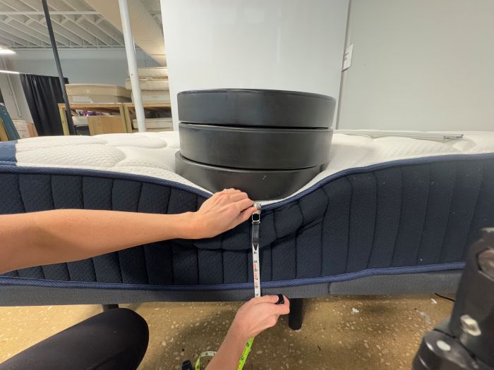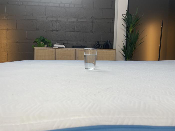 What the testers say: “To test the Nectar’s motion isolation, I placed a glass of water in the center of the mattress and pushed it into the surrounding area. The water was barely disturbed, which indicates the mattress isolates motion well. But I didn’t stop there! I also asked my coworker, Joe, to roll around on one side of the mattress while I relaxed on the other side. When my coworker switched sleeping positions, I didn’t feel his movement come over to my side of the bed.” — Marten, Lead Reviewer
