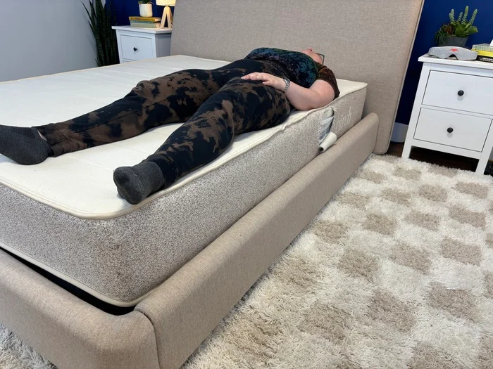 This bounciness extended to the edges of the mattress, making it easier to get in and out. Our tester liked that she could โbounceโ to her feet, which could also benefit sleepers with mobility issues. She did note that the mattress sagged more the further she scooted off it, but sitting normally felt relatively secure. The same was true for lying downโeven when side sleeping, her most precarious position, she felt stable.