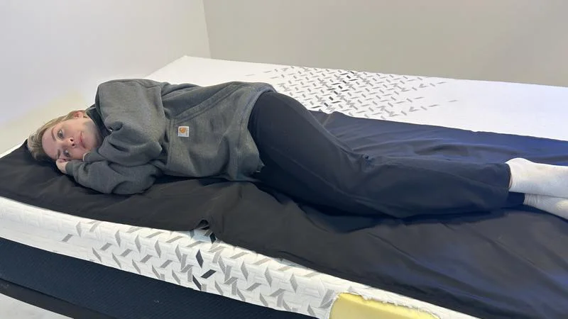 โBack sleeping is definitely the most comfortable position for lighter sleepers,โ said Dr. Habeeb. โMy lower back actually feels really supported, and the foam is contouring this area. My spinal alignment is really good in this position. This bed is pretty firm, so Iโd recommend it to back sleepers who prefer a firmer feel for sure.โ