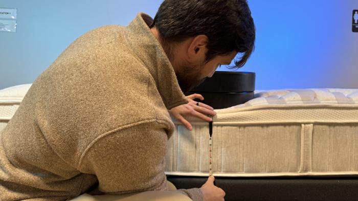 But our full process involves testing numerous aspects of a bed’s performance, including cooling, pressure relief, edge support, and more. We evaluate and score these factors using specialized technology as well as firsthand accounts of how a bed feels to testers with different body types.