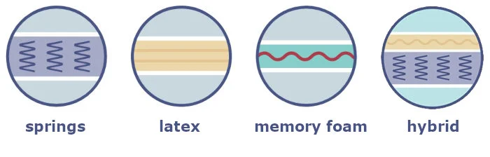 There are four main mattress types that we commonly see and test. In this process, weโve found that different mattress types can better suit certain sleepers over others.