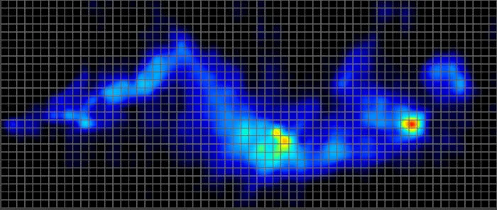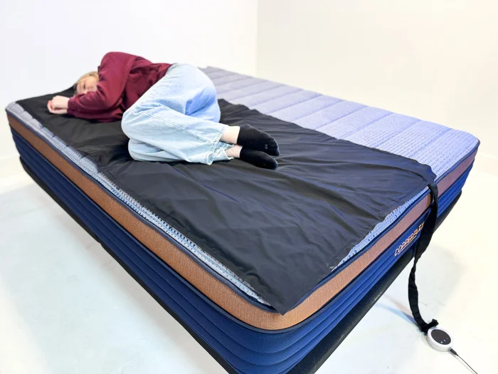 In some cases, we use a specialized mat to measure the pressure distribution across the bed surface. This is rolled out beneath the sleeper before they get into bed. The map uses thermal imaging to create a color-coded map that shows areas of high (red and yellow) or low (blue and green) pressure. Itโs a helpful visual, but sometimes it contradicts with our testerโs experience.