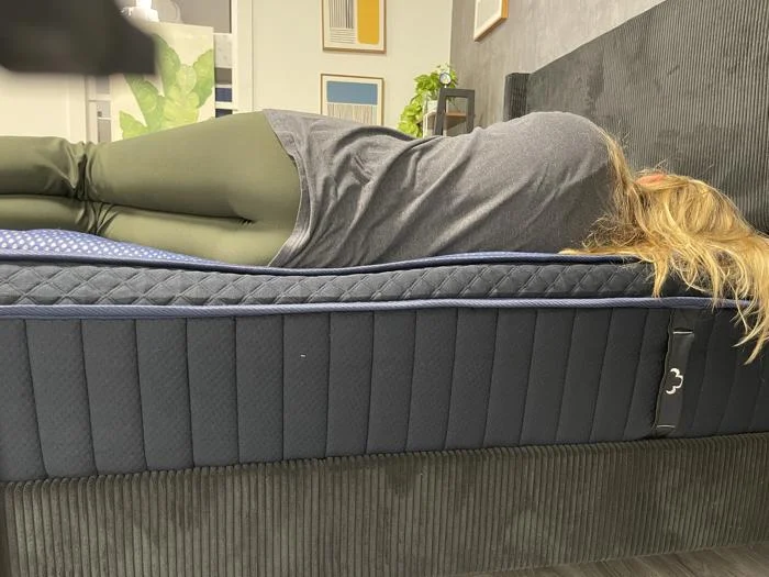 Cait also noticed the springy nature of the bed when testing out its edge support, which helped her get in and out of bed with a little boost. But she particularly enjoyed lying down at the perimeter: โNo matter how close I got to the edge of the bedโeven when I dangled off the side to reach my phone on the floorโthe bed supported me with no dipping or sagging,โ she said, rating edge support at 5/5 and recommending it for seniors and those with mobility concerns.