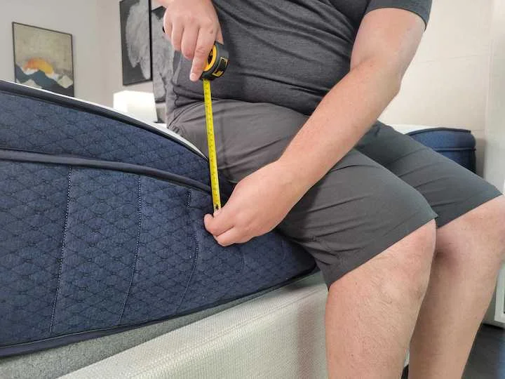 Perhaps unsurprisingly, the Nectar Classic also has decent edge support, earning it 3.4/5 in this category. Again, memory foam mattresses typically underperform when it comes to edge support, so the Nectar Classic was a pleasant surprise. When Marten sat on the side of the bed, he measured a mere 2.5โ dip, which is impressive for an all-foam model.