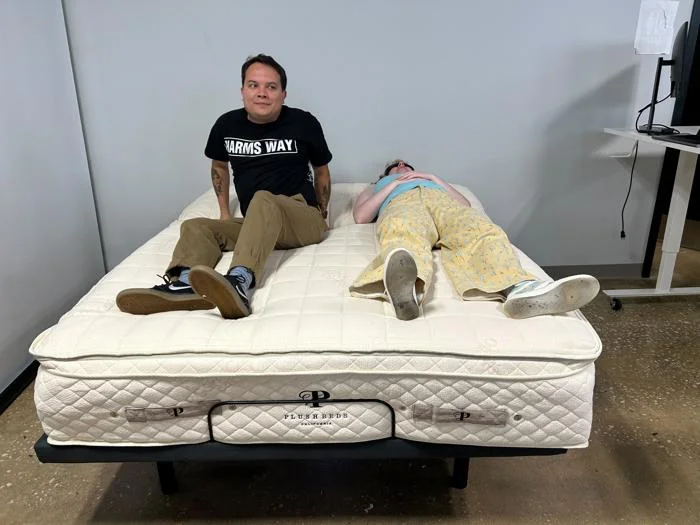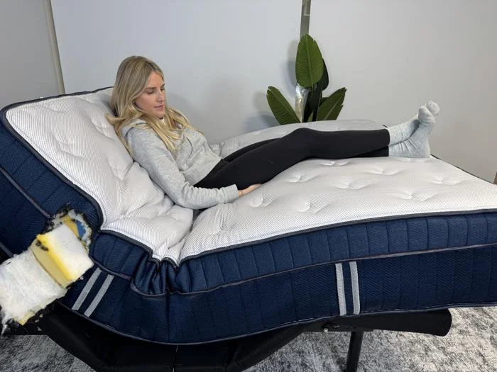 Most mattresses are advertised as compatible with adjustable bases, but we’ve found this isn’t always the case in practice. Whenever a bed arrives in our studio, we plop it onto an adjustable base to see if it fits properly. Our testers rest on the mattress as it sits on the base, checking for any gapping between the mattress and the frame or for slipping as they cycle through positions.