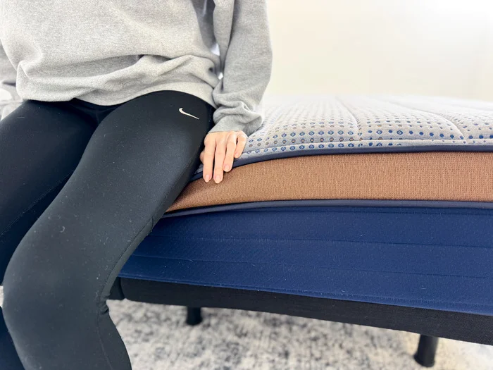 Surprisingly, Nicole thought the bed had pretty decent motion isolation. Our water glass test showed virtually no movement. When it came to her partner moving around in bed, she said, โThe bed didnโt move per se but I felt it.โ Latex is rarely known for its motion absorption, but perhaps the upper wool layers are pulling their weight here, giving the bed its 4/5 score. The edges of the mattress did compress when bearing weight, but were secure enough to remain steady when our testers lay down near the edge. This still may be a dealbreaker for older folks or those who want rock-solid edges for getting in and out of bed.
