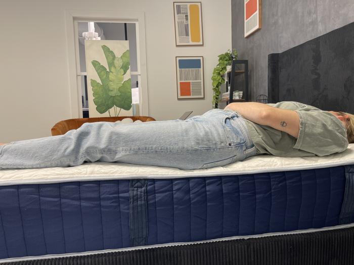 Melanie added that while she’s very picky about latex beds, the Natural delivered in this position. “My shoulder felt more cradled than it has on other latex mattresses, and even though there wasn’t a ton of sinkage or plushness, it felt like joints were being held rather than encountering springy resistance,” she elaborated.