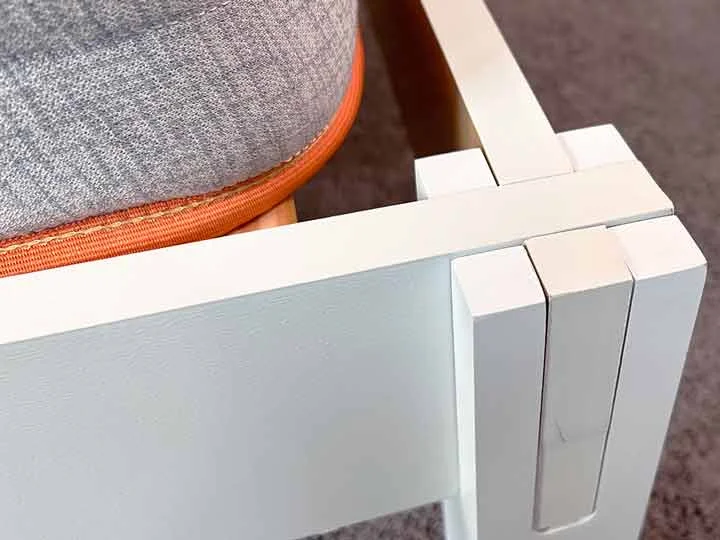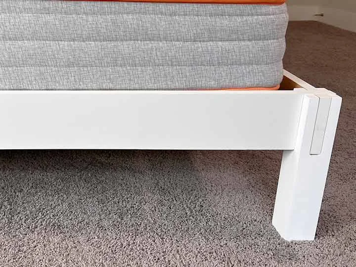 The Birch wood bed frame uses something called Japanese joinery for its assembly. This is the same construction method for the Thuma bed frame, which we’ve also reviewed. Japanese joinery uses cutouts in the wood to slide pieces together and lock them into place without the use of tools and screws.