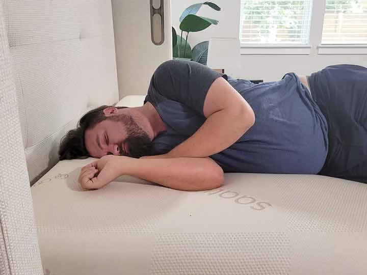 โTypically, as a bigger guy, I need more support in my lumbar area and on my back. I felt really good on this mattress. It does feel a little soft to me overall, but itโs providing great alignment throughout my body,โ said Marten Carlson, lead mattress reviewer.