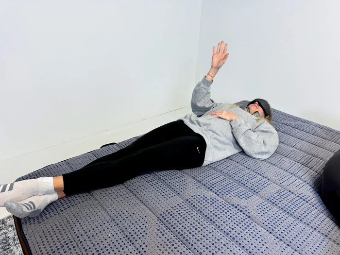 As for stomach sleepers, Kayla said that she felt very supported around her midsection and appreciated the spinal alignment but cautioned that the mattress may have too much of a firm feel through the chest for some stomach sleepers.