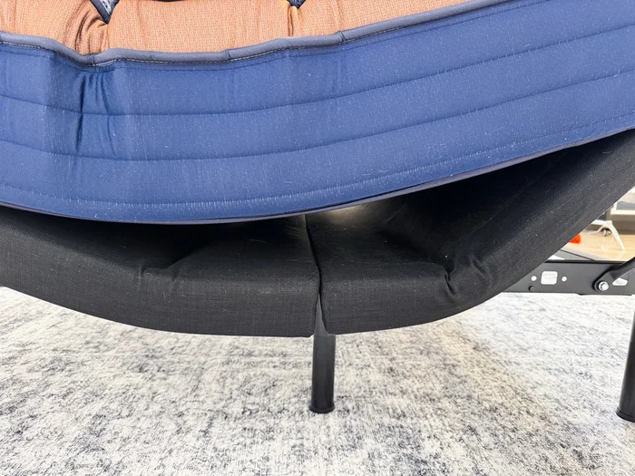 When the base was in the lounge or TV setting, there was a considerable gap between the mattress and the base, making it unstable. Additionally, the bed was so firm that when it was adjusting, it pushed into my back so much that I felt like I was in a trash compactor. When I fully lowered the bed, it was 4 to 6 inches off the base at the foot.