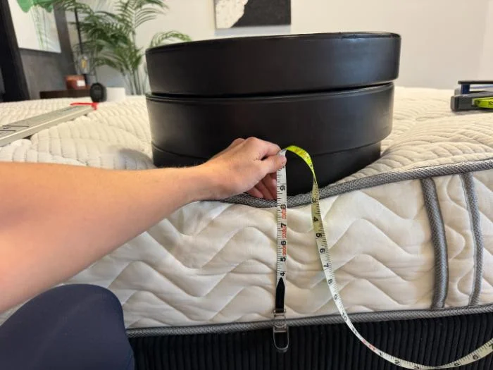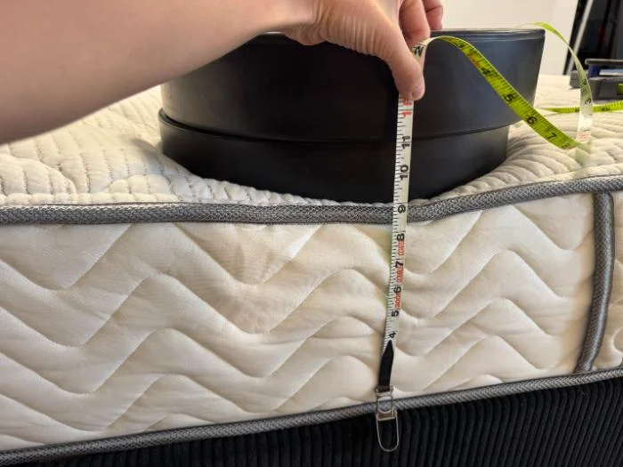 We also test edge support by placing weights right on the edge of the bed and measuring how much sinkage they cause. In this test, too, the DLX Classic excelled. It sank less than average even when the heaviest weights were applied.