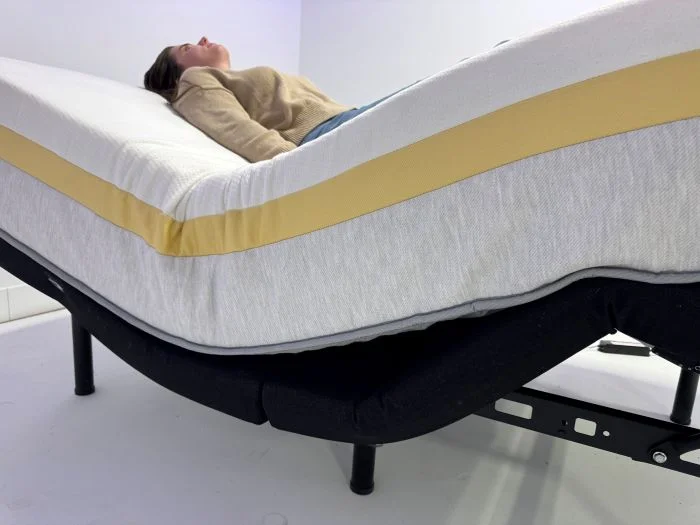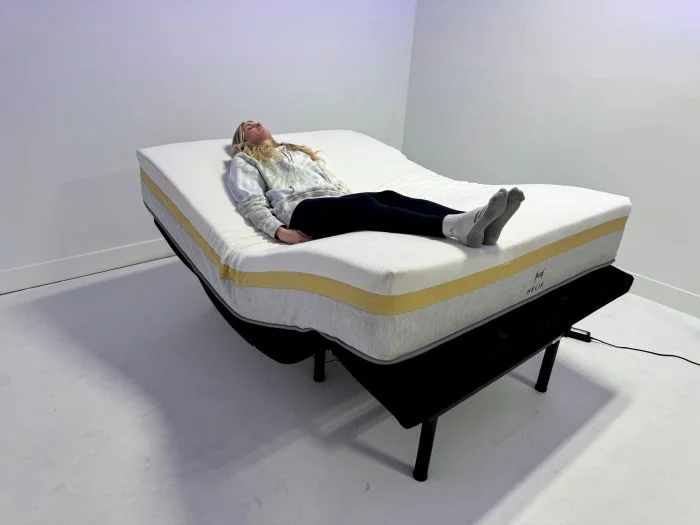 Adjustable bases are popular, so we make a point of testing compatibility at our Mattress Clarity testing studio. The Helix Dawn fared reasonably well, with 3/5 stars. When we moved the base into different positions, the mattress didnโt conform well on its own, but it did better when it had the weight of a person on it. Still, there was minor gapping between the mattress and the base. The cover and uppermost layers are flexible enough to avoid scrunching, which keeps it pretty comfortable.