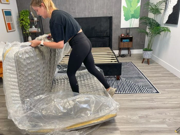 Itโs typical for bed-in-a-box mattresses with foam layers to off-gas, or emit a chemical odor. But our lightweight tester found this one pretty off-putting. โIt has a very strong plastic chemical smell, which is normal with off-gassing, but thereโs almost an undertone of a gasoline kind of smell,โ she said. โI am used to mattresses that are vacuum-sealed to have that plastic smell, but this has a worse hint to it.โ