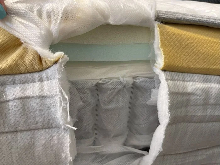 As part of our testing methodology, we consider construction and the presence or absence of high-quality materials. We also cut a section from the cover on the side of the mattress for a closer look at its individual layers.