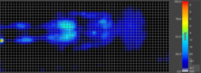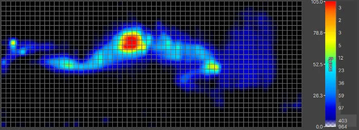When he rolled over on his side, the pressure map lit up red around Conradโs hips. Just from switching sleeping positions, his average pressure in pounds per square inch (PSI) went from 10.3 to 14.6. Both the red hot spot and the increase in PSI indicate that Conrad was experiencing more pressure than ideal when side sleeping.