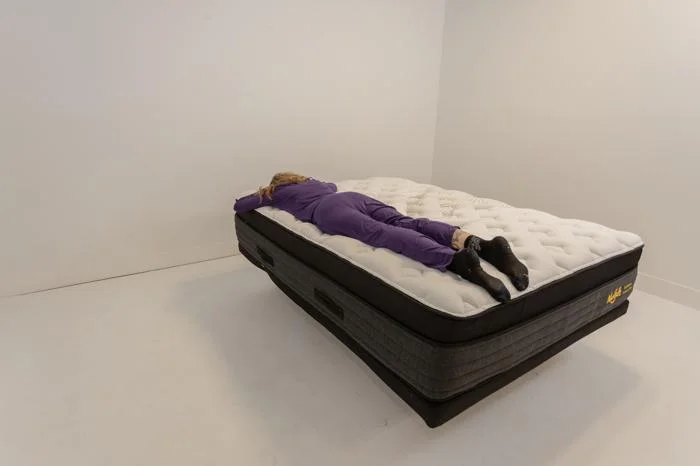 Caitlin performed two tests to assess motion isolation. First, she placed a glass of water on one side of the bed. She climbed on and off the bed on the other side, observing no movement to the water in the glass, even when she actively tried to rock the glass.