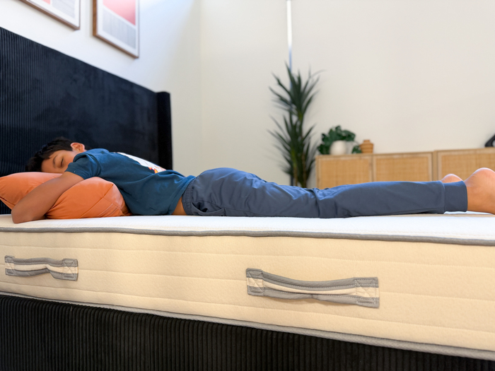 Stomach sleepers, whether big or small, need a firmer, more supportive surface to keep the hips from dipping. Adult stomach sleepers aren’t likely to find that on a mattress built for kids, and that was the case here—even on the firm side. “As an adult, I’m not going for this on my stomach. My hips dipped and the coils were awful on my chest,” Sosha reported. Most stomach-sleeping kids should fare better, but those who are on the bigger and heavier side of the scale may experience a similar issue.