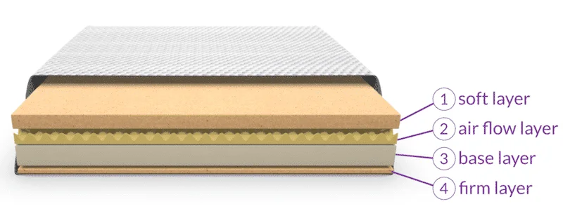 You can get a general sense of the construction of the Nolah mattress from the picture below. Hereโs a breakdown:- The cover is made of a thin, very soft viscose, and it is breathable and allows you to engage more directly with the layers beneath it.