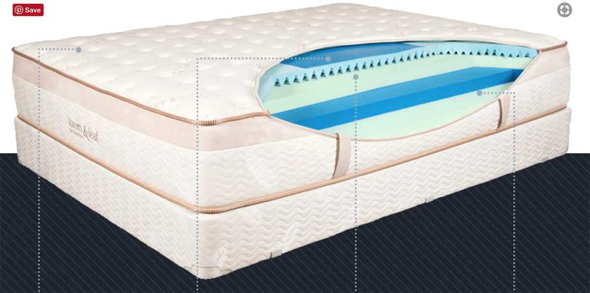 - The top 2-inch layer uses a combination of gel foams. The main foam uses what Loom & Leaf calls a โgel-swirlโ construction to evenly distribute temperature. Laminated on top of this gel is a special spinal panel that uses a cooling gel found in burn units of hospitals.